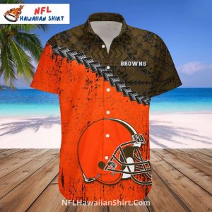 Cleveland Browns Hawaiian Shirt, Tribal Pattern And Grunge Helmet Design Aloha Shirt