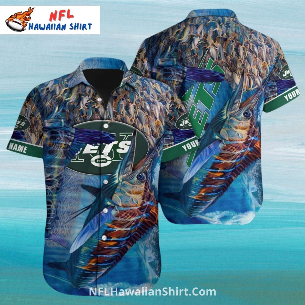 NY Jets Hawaiian Shirt - Blue Marlin Fishing And Football Logo